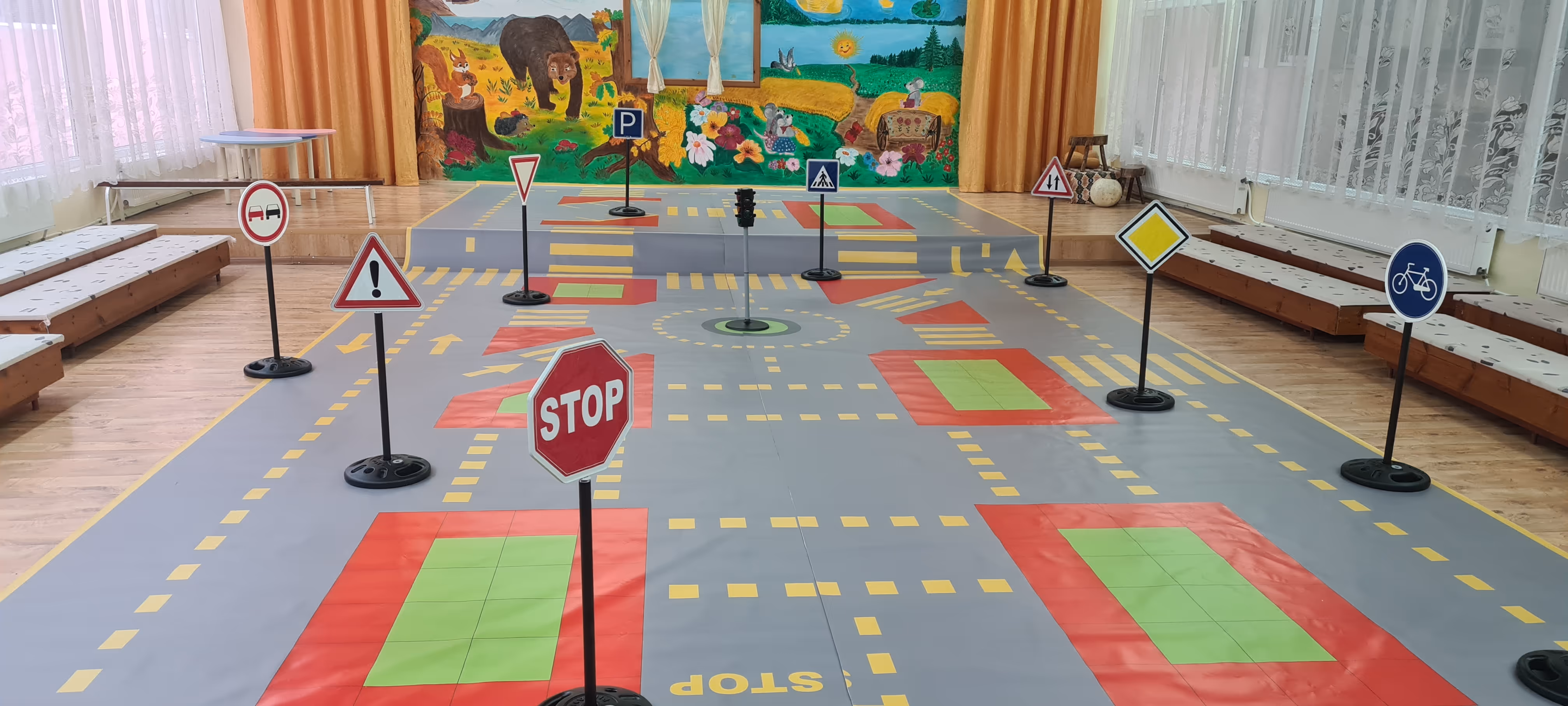 Реализираният проект дава възможност на децата от предучилищна възраст чрез игра да се запознаят с правилата за движение по пътищата, както и с техническите средства за организация и регулиране на движението. Формата, размерът и съдържанието са в умален размер на пътна мрежа, запълнена с вертикална сигнализация (пътни знаци и светофар) и хоризонтална маркировка.