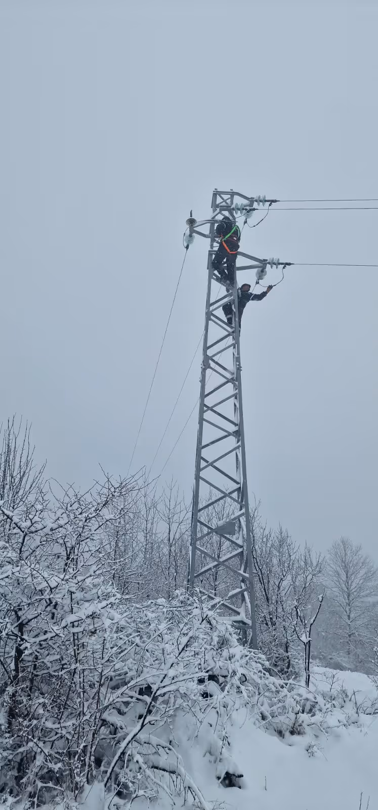 Продължителният снеговалеж през последните дни, както и тежкият мокър сняг причиниха падане на дървета върху проводниците и допълнително обледяване на съоръженията.